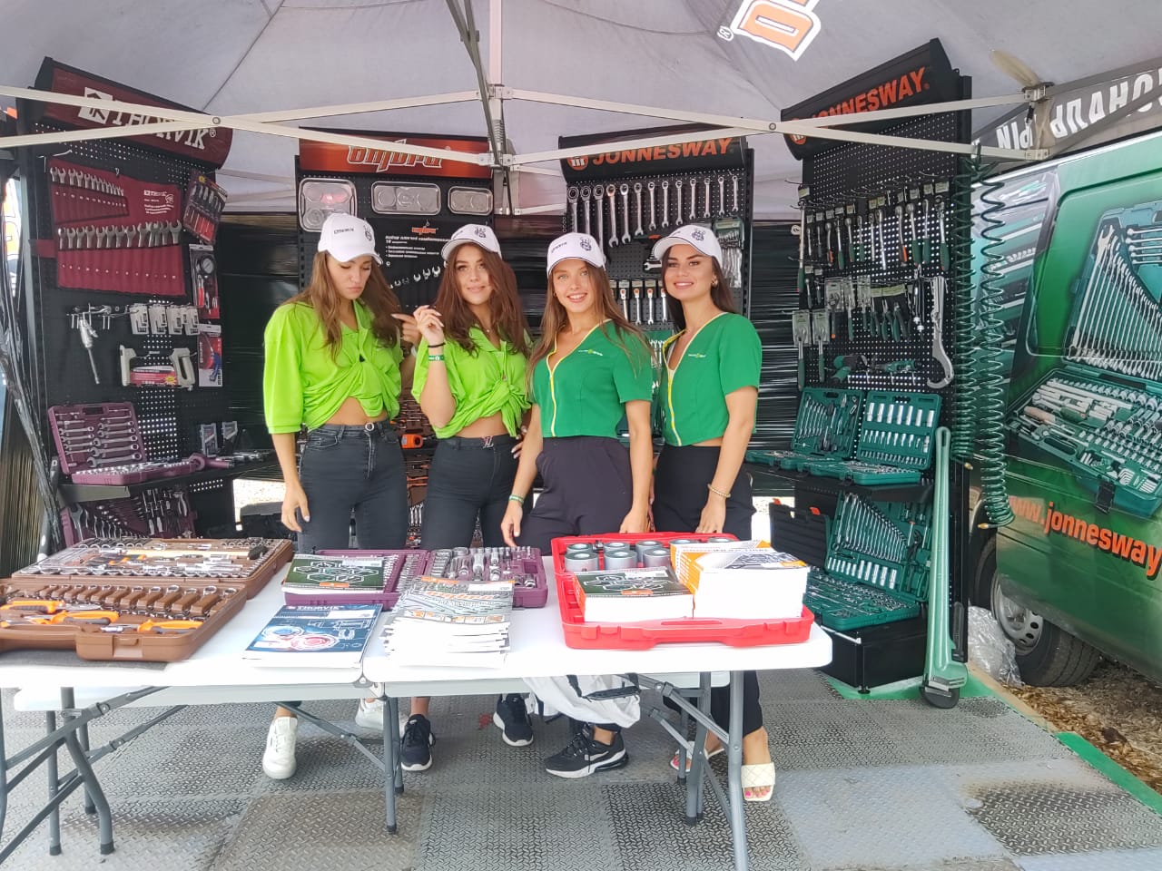 Шатер с инструментальной выкладкой мы, традиционно, разместили на территории стенда ГК "Трактородеталь", которая уже долгое время использует для ремонта лесозаготовительных машин инструменты ТМ JONNESWAY.