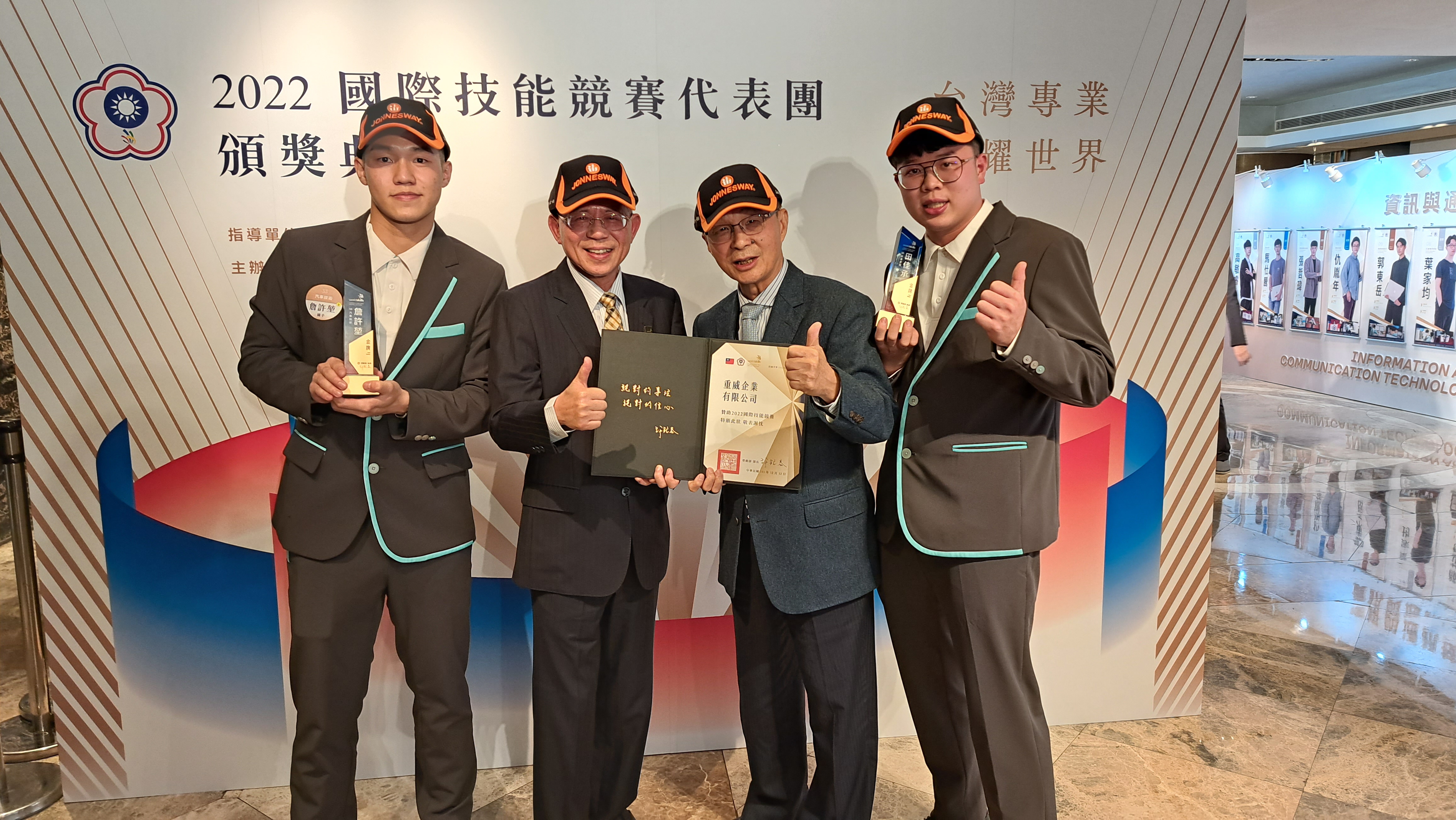 Компания Jonnesway, являющаяся спонсором компетенций автомобильных технологий и систем кондиционирования и охлаждения, гордится тем, что оба участника завоевали золотые медали. Это большое достижение не только для них самих, но и для Jonnesway, так как наши участники получили 2 из 6 золотых медалей, которые завоевала тайваньская делегация. Выдающаяся производительность тайваньских участников является лучшим свидетельством профессиональных инструментов и рабочих решений Jonnesway.