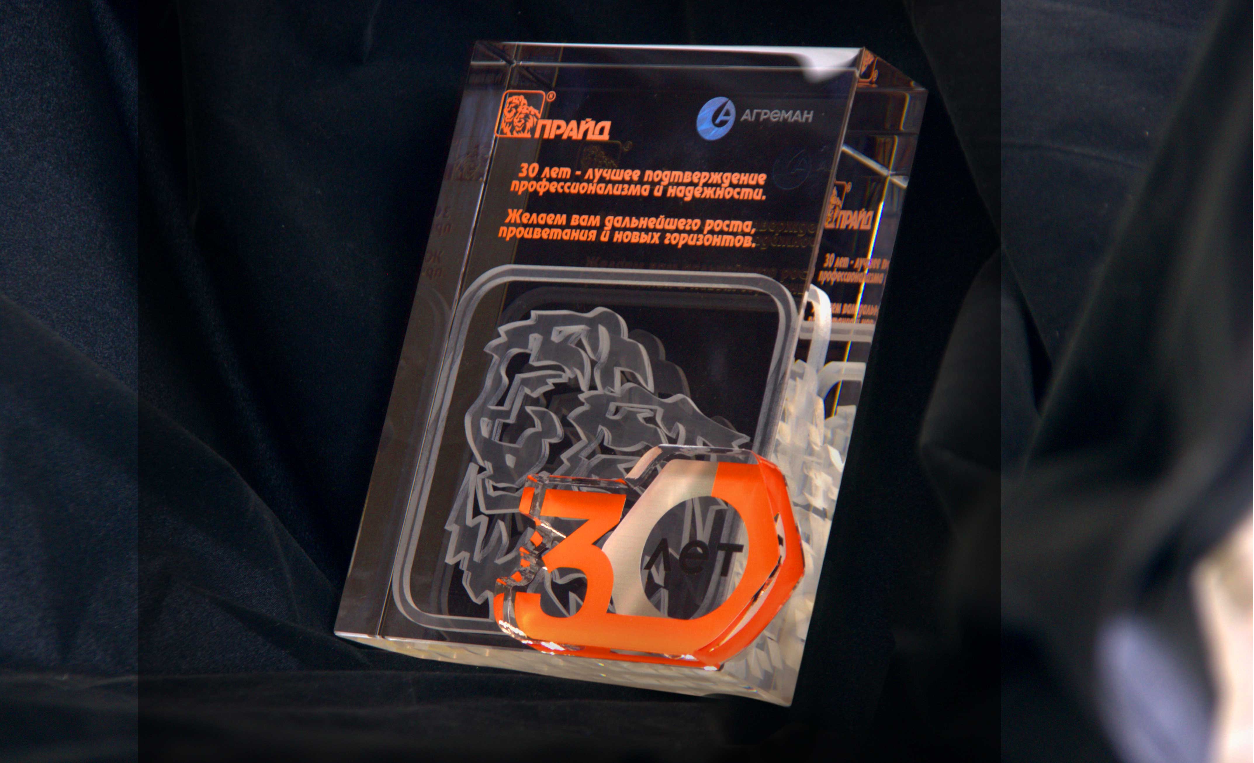 С 30-летним юбилеем компанию ПРАЙД поздравляют наши партнеры и друзья, среди которых - компания "Агреман".