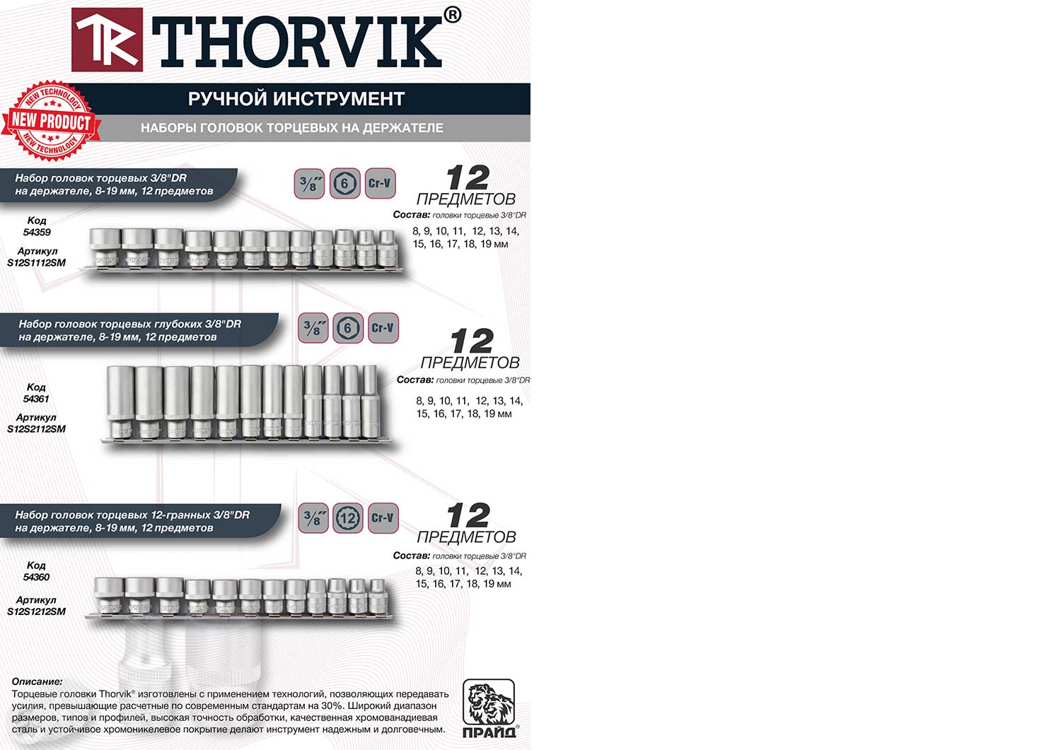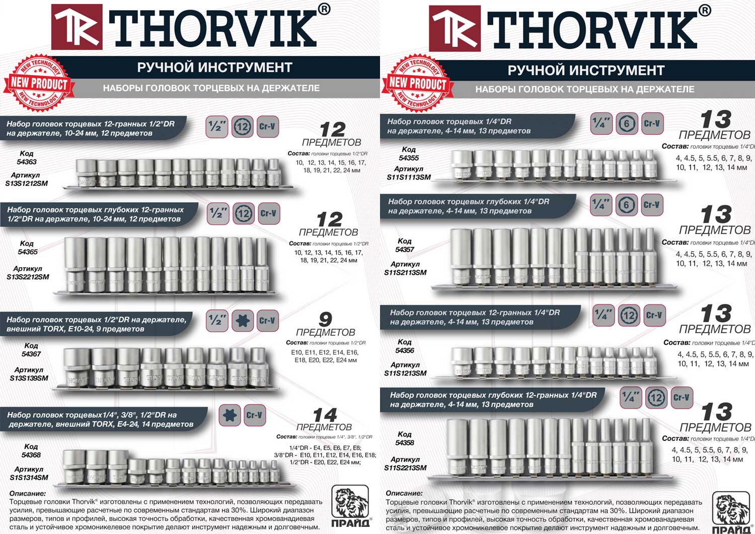 Мы рады представить новые наборы торцевых головок THORVIK, разработанные для удобства хранения и оперативного доступа к инструменту. Теперь все необходимые размеры надежно закреплены на прочном держателе, что упрощает работу и транспортировку.