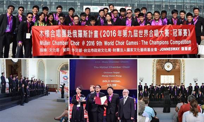 Тайваньский мужской камерный хор Мюллер выиграл три золотые награды. В категории «Мужские камерные хоры» хор Мюллер побил рекорд, набрав высший балл за шестнадцатилетнюю историю Игр (97.38)!