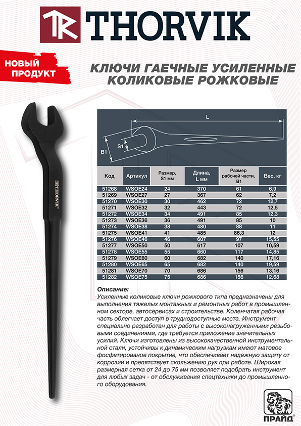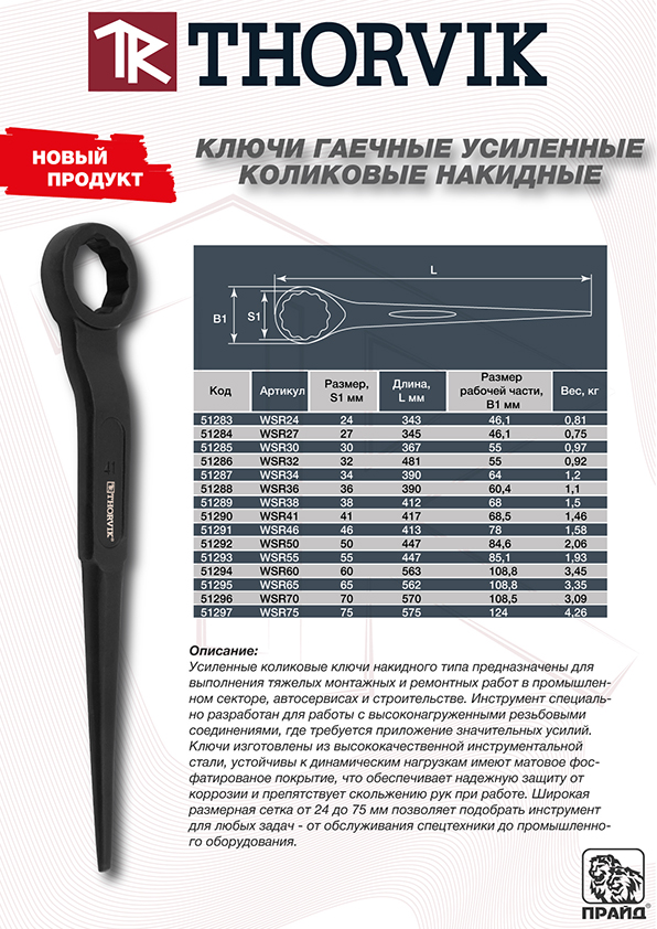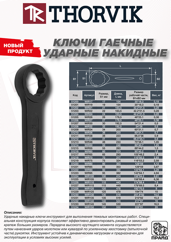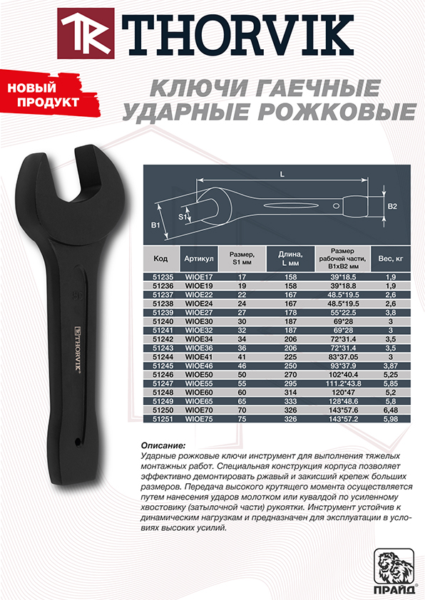 Ударные рожковые ключи THORVIK и ударные накидные ключи подходят для работы в условиях повышенных нагрузок и рассчитаны на использование там, где требуется максимальная прочность инструмента.