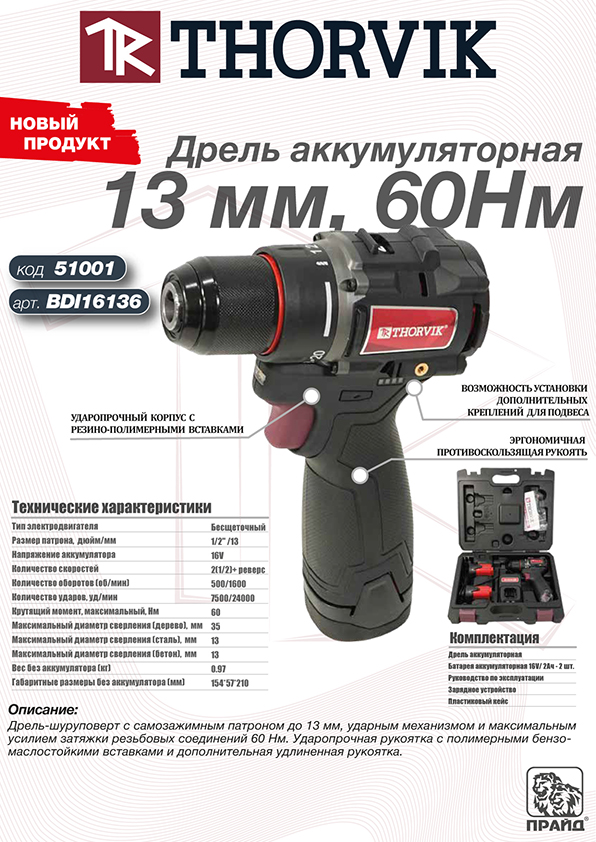 Новые аккумуляторные дрели THORVIK — это результат многолетнего опыта и тесного сотрудничества с ведущими производителями. Мы сделали все, чтобы наши инструменты стали надежными помощниками в любой задаче. Удобство, мощность и долговечность — ключевые характеристики, на которые мы ориентировались при разработке.