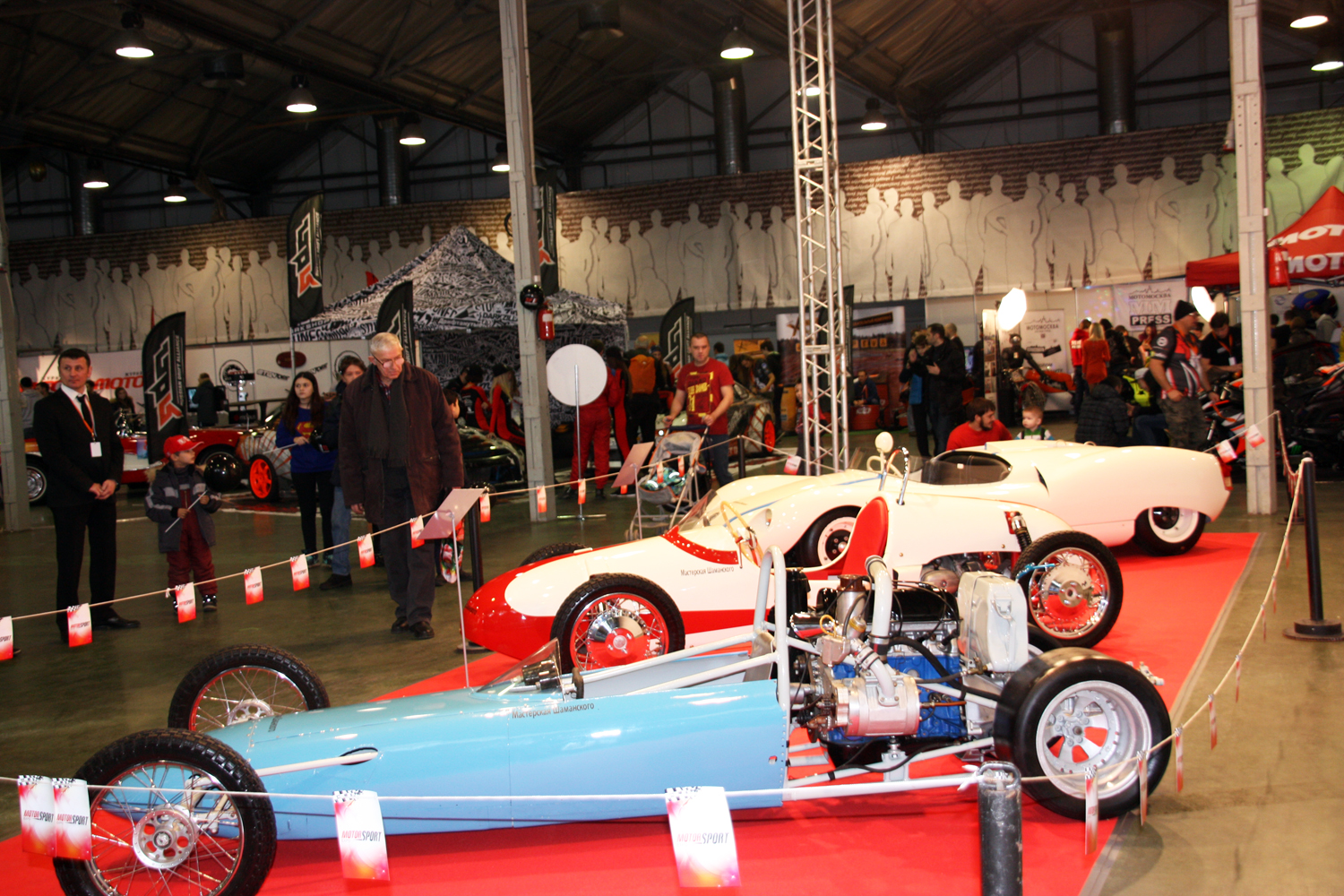 Кроме современных аппаратов на выставке можно было увидеть исторические болиды, спорткары и мотоциклы.