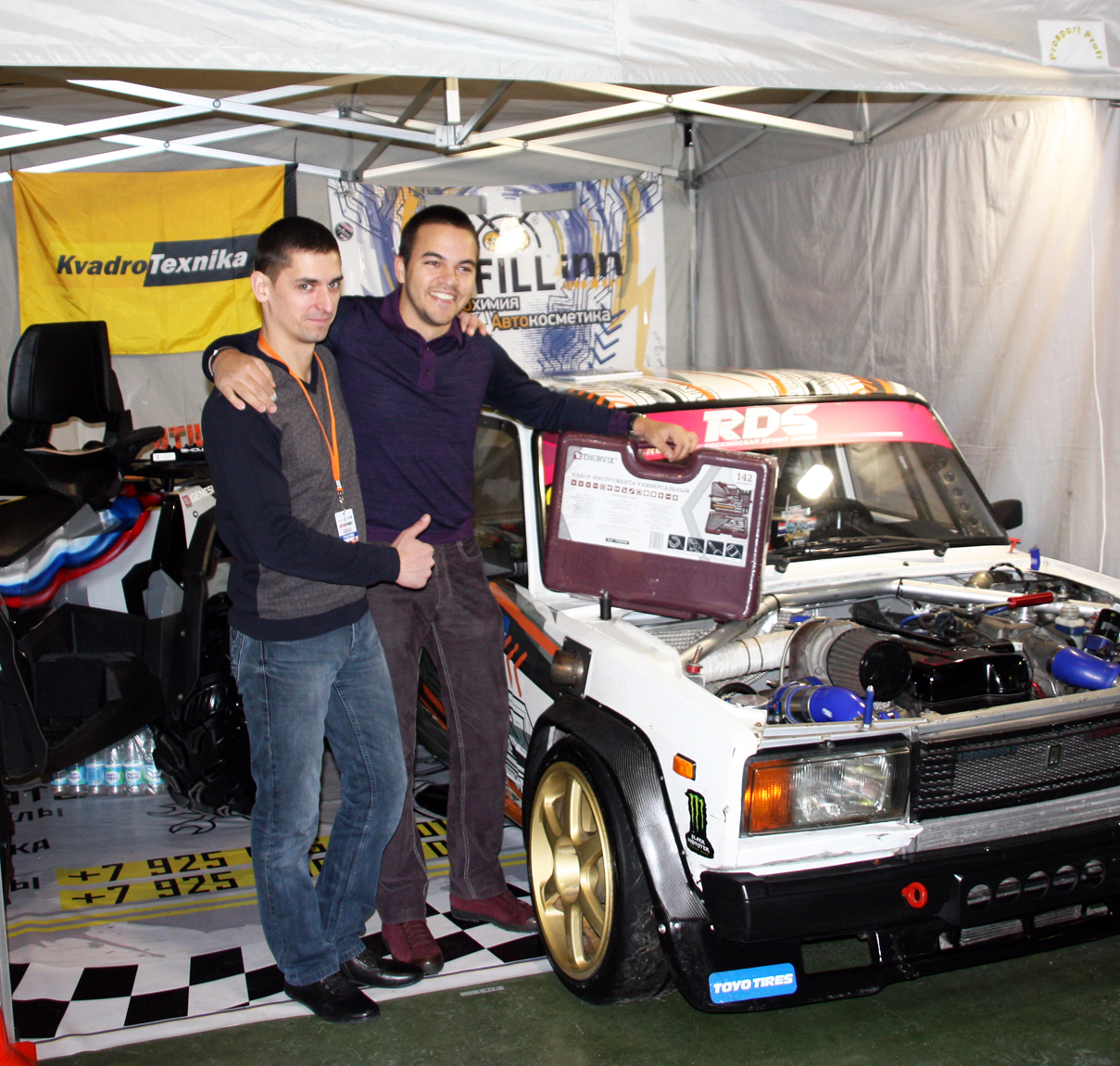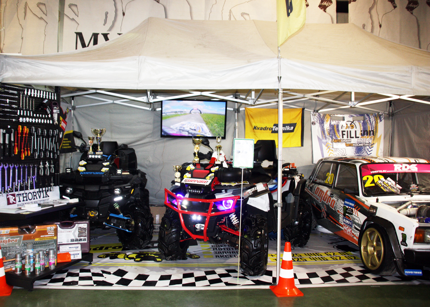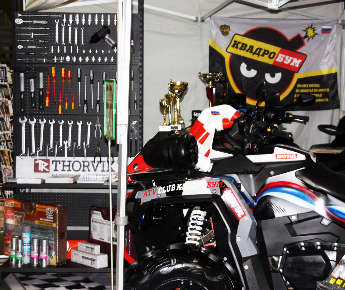 На одном из стендов красовалась в цветах ТМ FILL Inn и ТМ OMBRA знаменитая «пятерка» известнейшего пилота, неоднократного призера соревнований по дрифту, Федора Воробьева (https://vk.com/vaz2105drift) . Естественно, здесь же базировались клуб «Квадробум» и компания «Квадротехника» (http://kvadrotexnika.ru/) с квадроциклами STELS. Кстати, в регулярном обслуживании техники наши партнеры пользуются инструментом ТМ Ombra и считают его удобным и надежным.